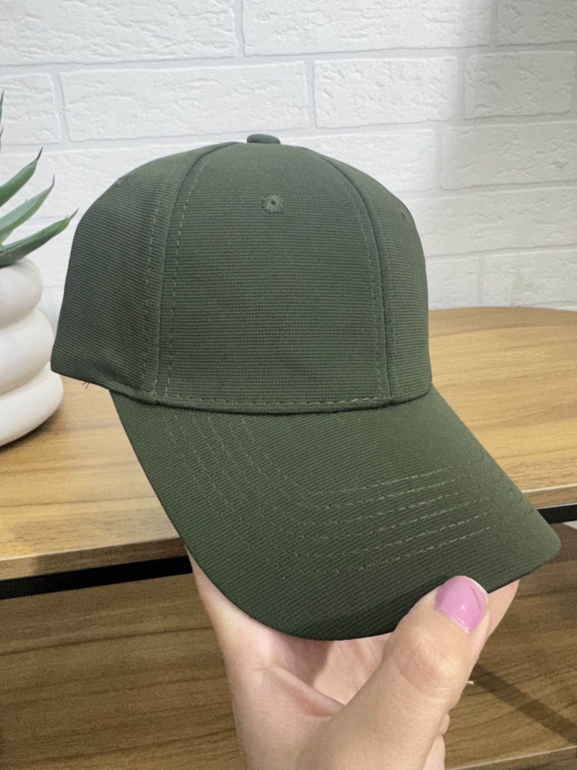 Gorra de primavera en color verde oliva.