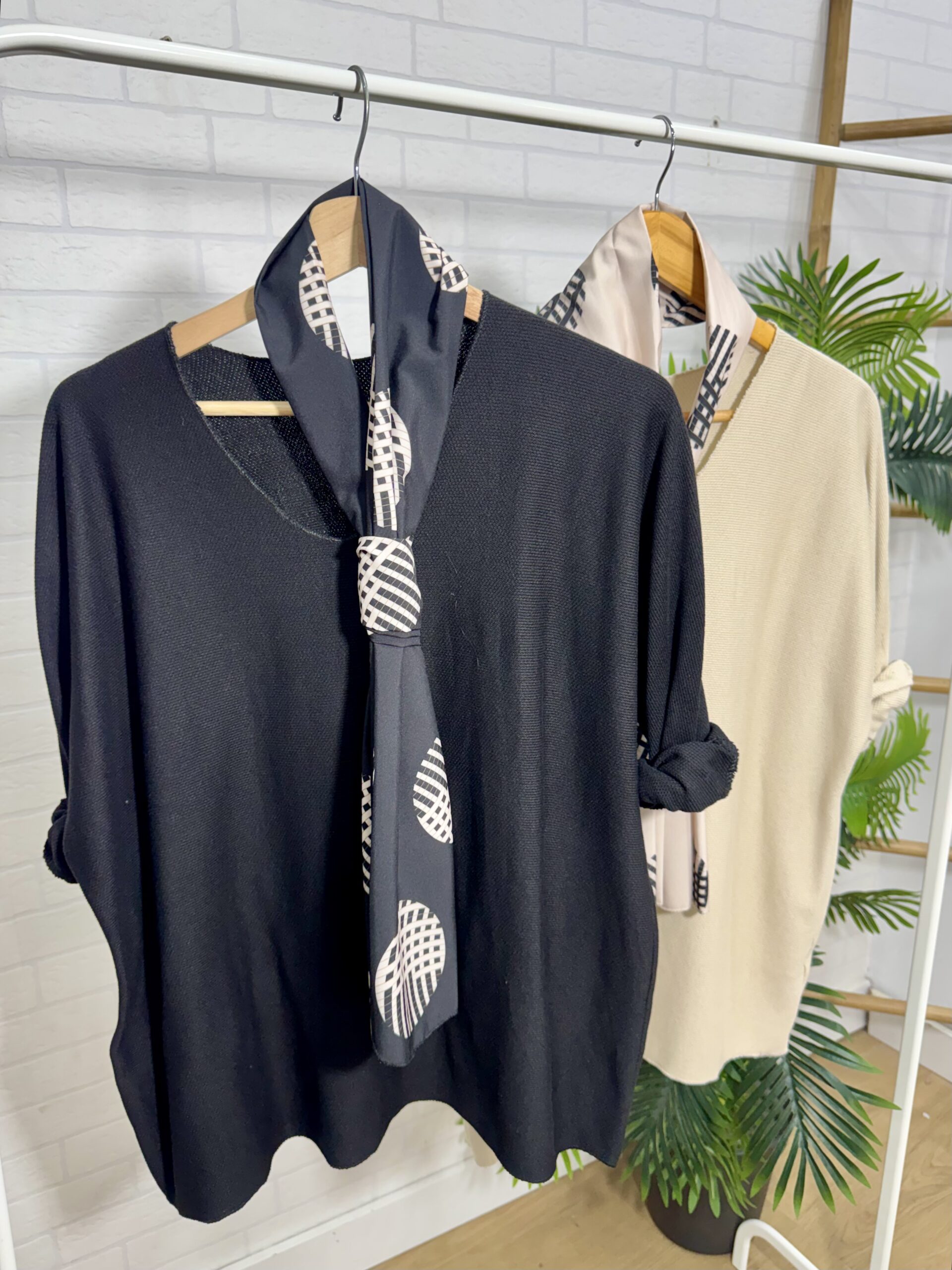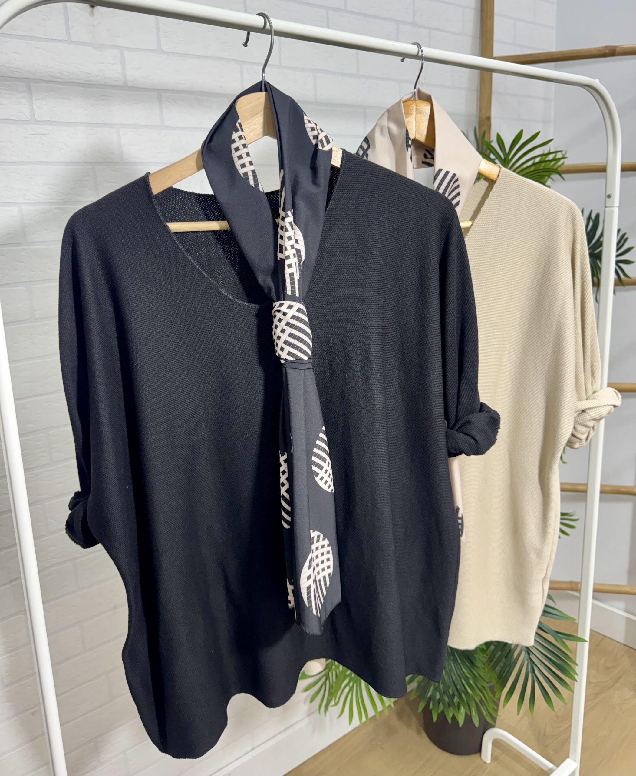 Jersey de punto fino con pañuelo a conjunto.